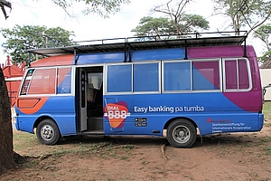 The beautiful eTumba AB-Bank Savings bus sponsored by us during an event in Chongwe