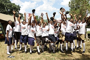 Happy students celebrating during an educative Financial Literacy Week school event in Choma.
